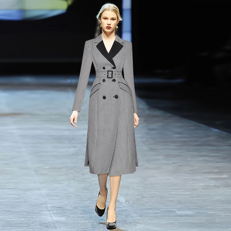 Best Autumn Winter Long Sleeve Vintage High Quality Runway Dress Plaid Women Fashion Formal Office Ladie
