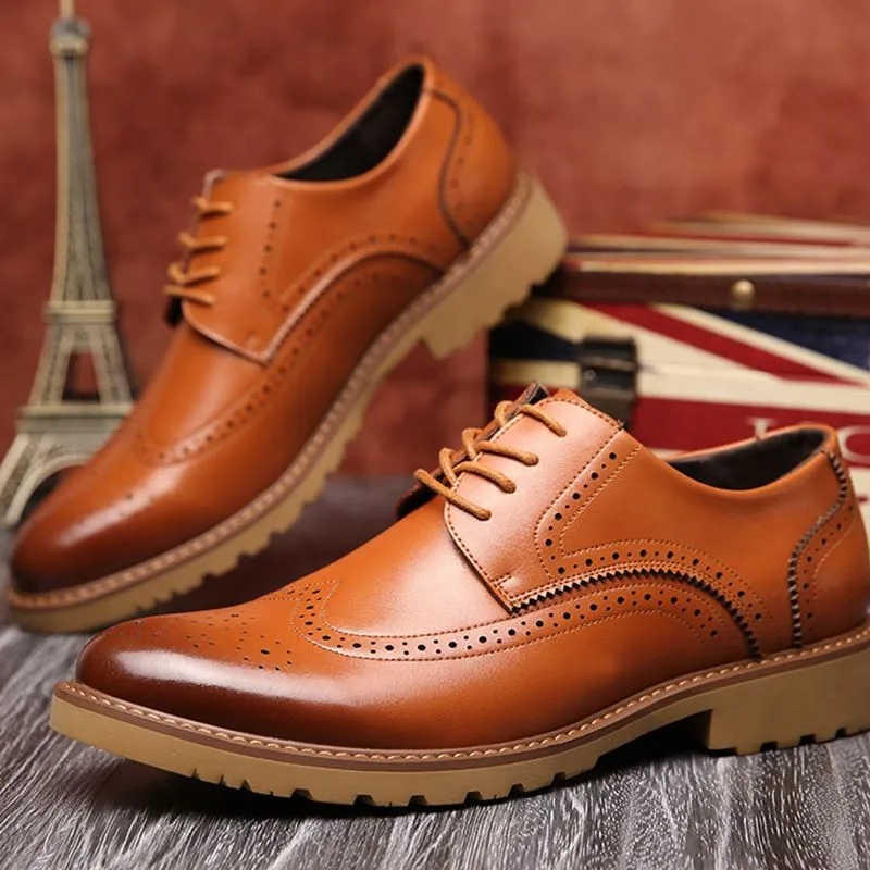 Merkmak Leather Brogue Business Formal Dress Men Shoes Classic Office Wedding Mens Oxfords Shoes Ca