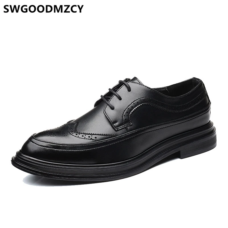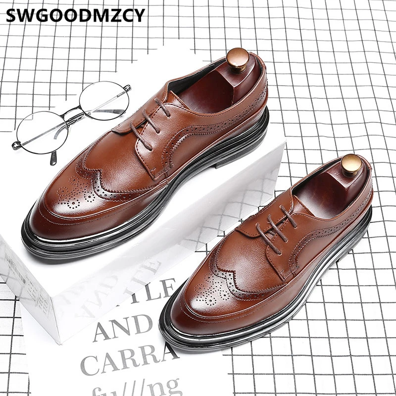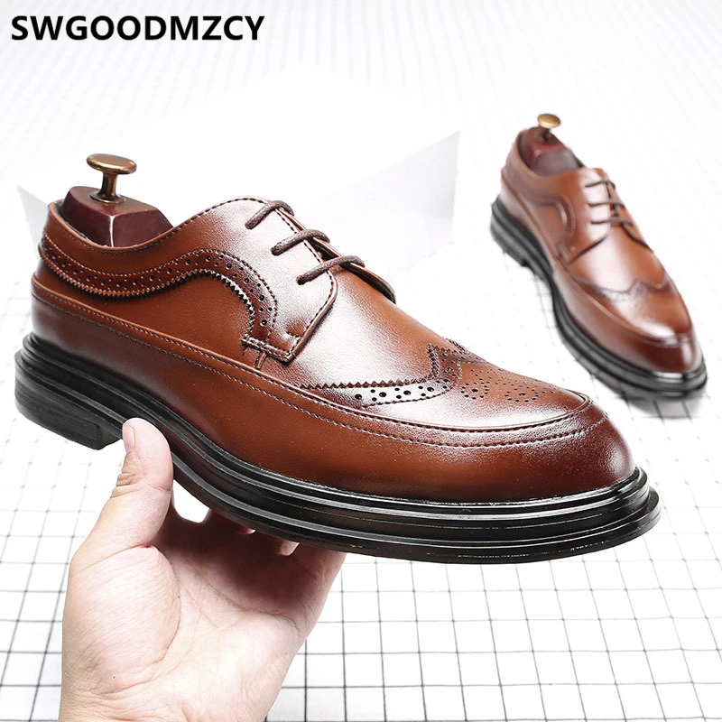 Leather Shoes Men Classic Italian Brand Brogue Shoes Men Formal Brown Dress Official Shoes For Mens